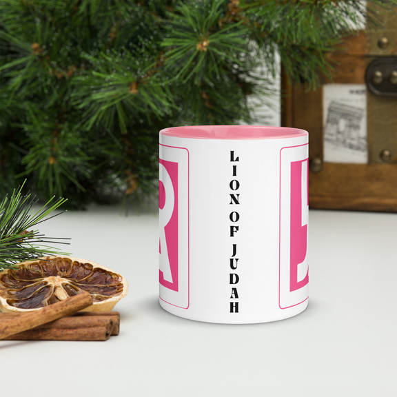 Lion Of Judah Apparel Pink Logo Mug with Color Inside