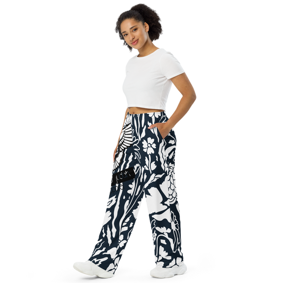 Lion Of Judah Black Logo Black & White Art Graphic Design Unisex Wide-Leg Pants