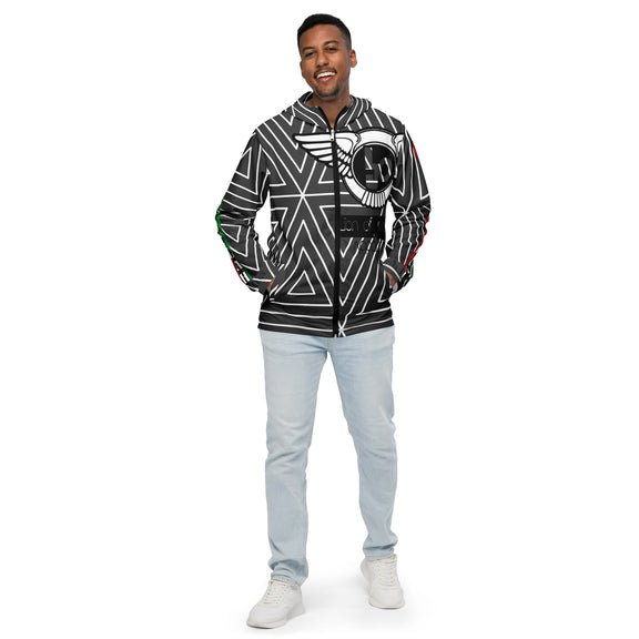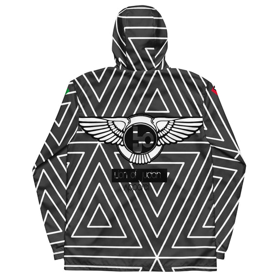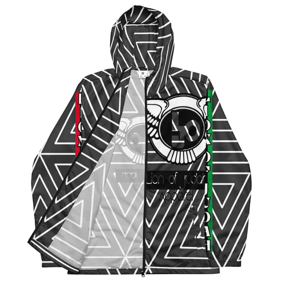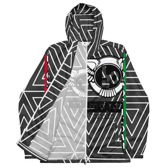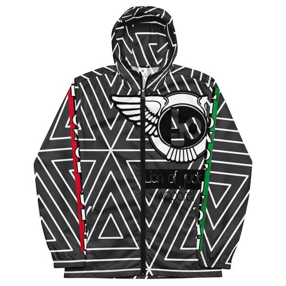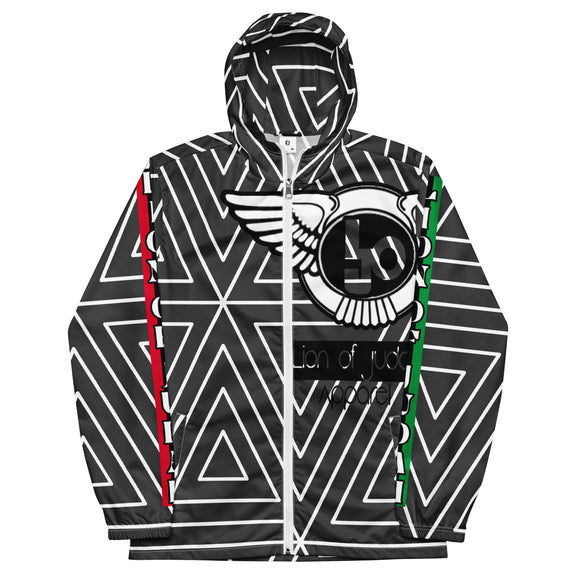Lion Of Judah Black Logo Black with White stripe shape Pattern Design Men's Windbreaker