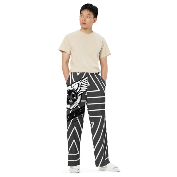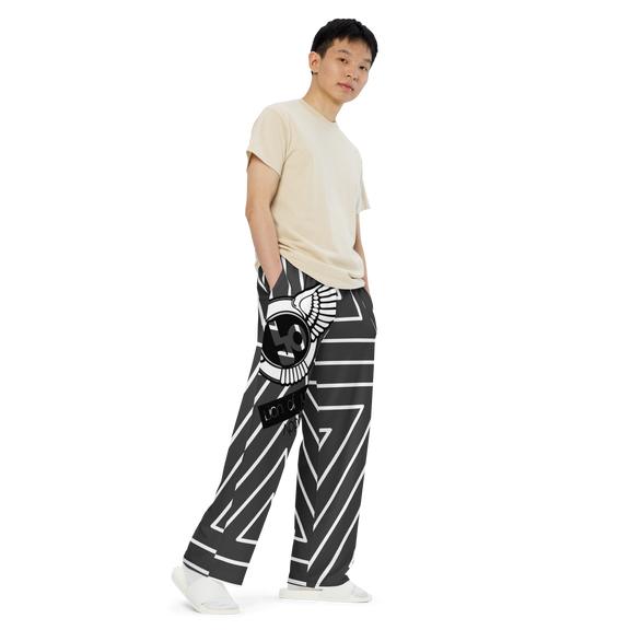 Lion Of Judah Black Logo Black with White stripe shape Pattern Design Unisex Wide-Leg Pants