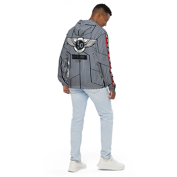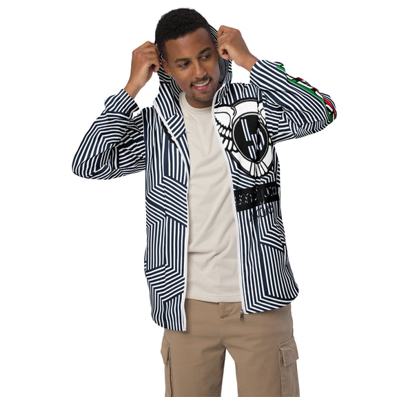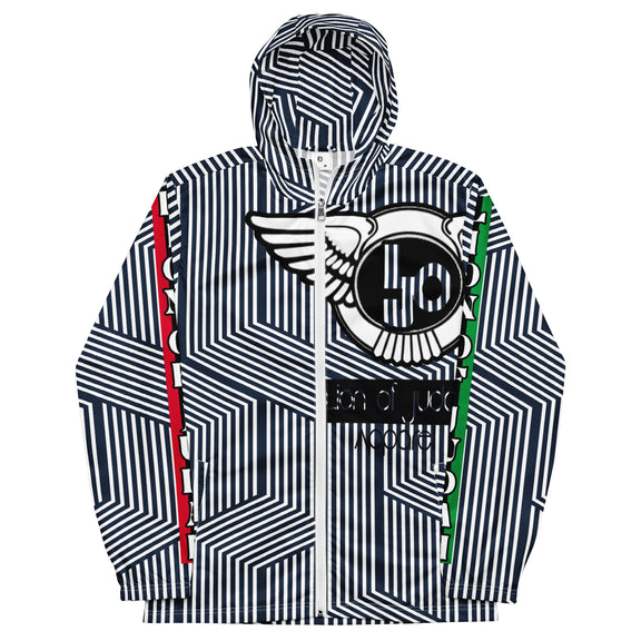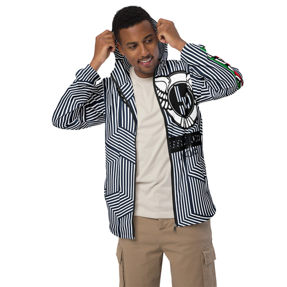 Lion Of Judah Black Logo Blue with White stripe Graphic Design Men's Windbreaker