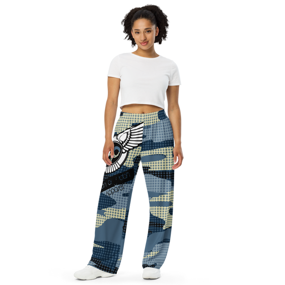 Lion Of Judah Black Logo Camo Pattern Graphic Design Unisex Wide-Leg Pants