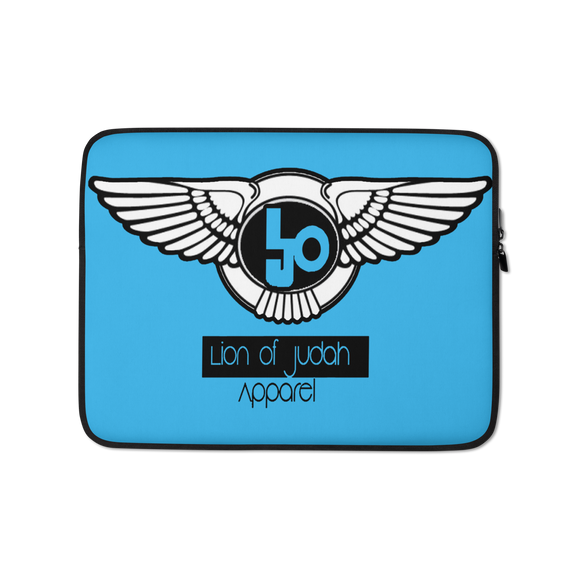 Lion Of Judah Black Logo Design Deep Sky Blue Laptop Sleeve
