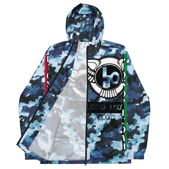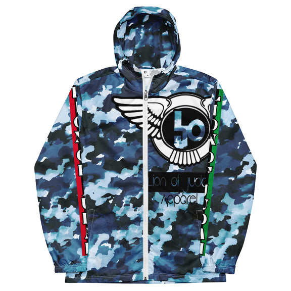 Lion Of Judah Black Logo Graphic Design Camo V.2 Men's Windbreaker
