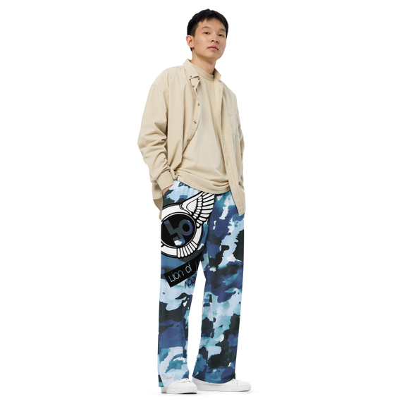Lion Of Judah Black Logo Graphic Design Camo V.2 Unisex Wide-Leg Pants