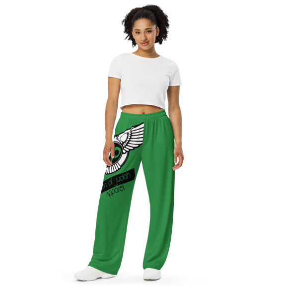 Lion Of Judah Black Logo Green Graphic Design Unisex Wide-Leg Pants