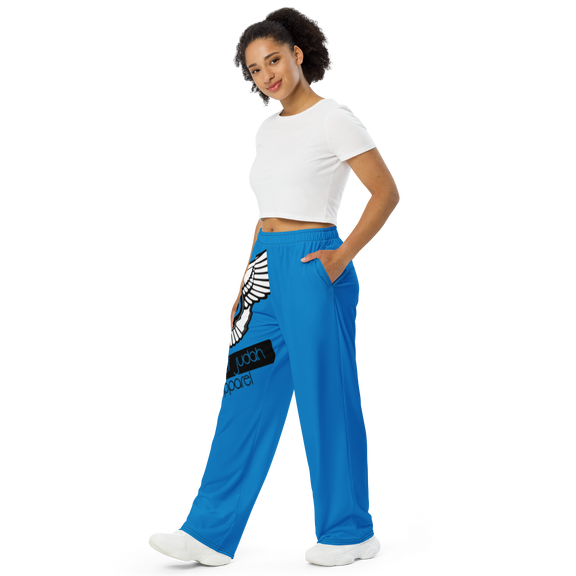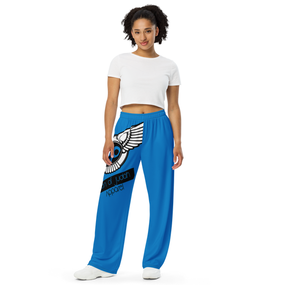 Lion Of Judah Black Logo Navy Blue Graphic Design Unisex Wide-Leg Pants