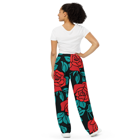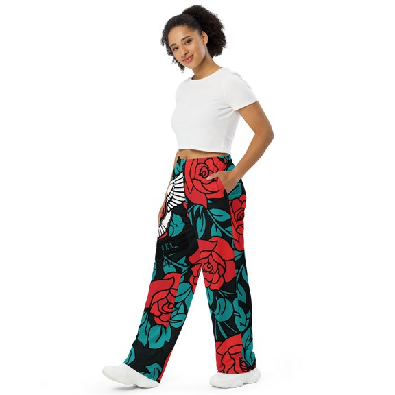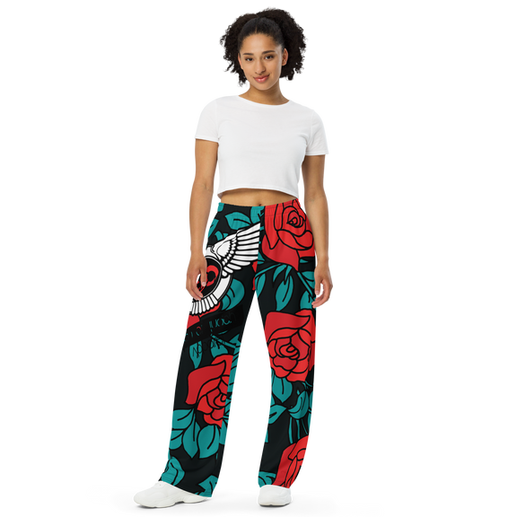 Lion Of Judah Black Logo Red Rose Art Graphic Design Unisex Wide-Leg Pants
