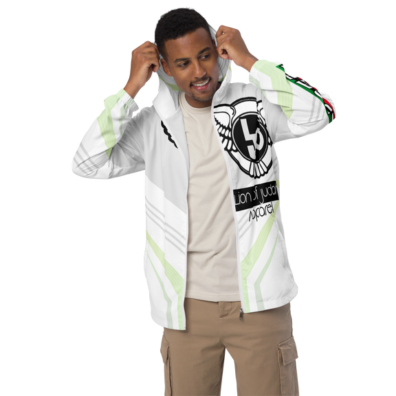 Lion Of Judah Black Logo White Yellow V Shaped Graphic Design V.6 Men’s windbreaker