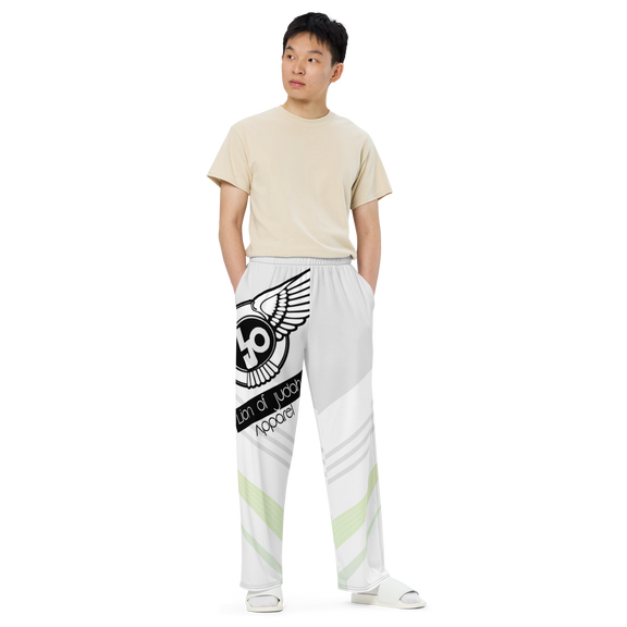 Lion Of Judah Black Logo White Yellow V Shaped Graphic Design V.6 Unisex Wide-Leg Pants