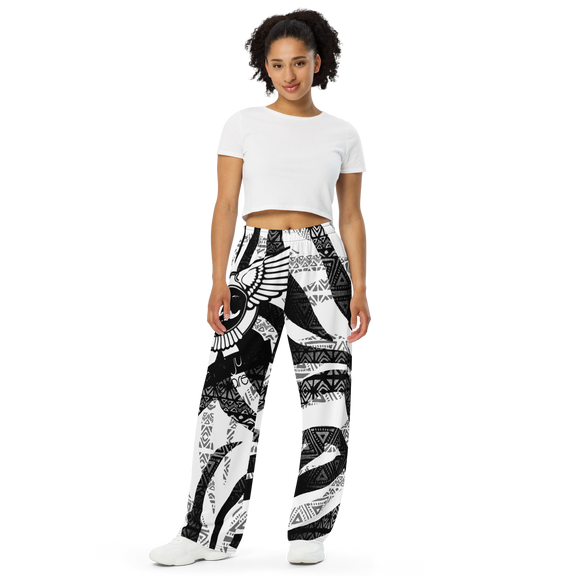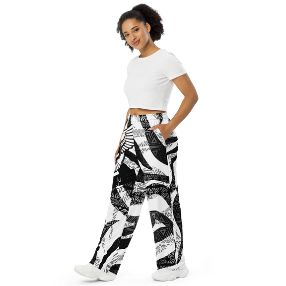 Lion Of Judah Black Logo Zebra Black & White Pattern Graphic Design Unisex Wide-Leg Pants