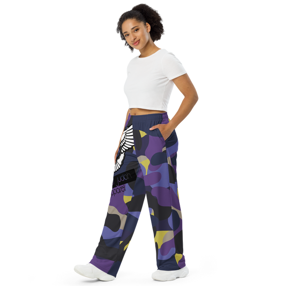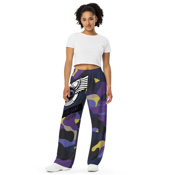 Lion Of Judah Black Purple Camo Graphic Design Unisex Wide-Leg Pants