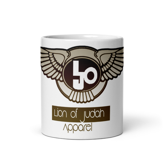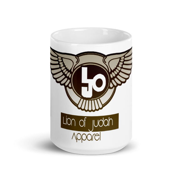 Lion Of Judah Design Bronze Logo White glossy mug