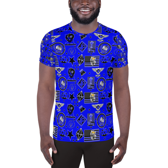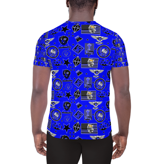 Lion Of Judah Apparel Blue Pattern Design All Over Print Men's Athletic T-shirt