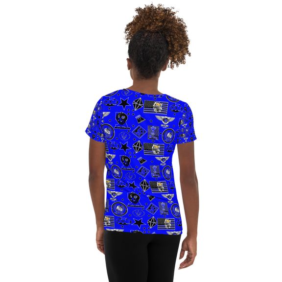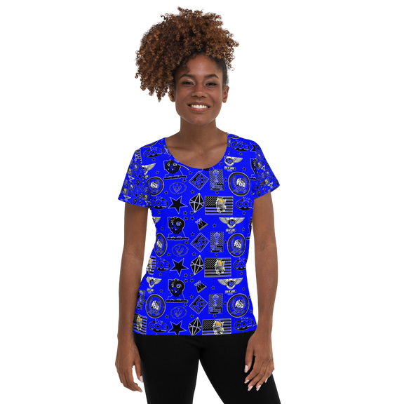 Lion Of Judah Apparel Blue Pattern Design All Over Print Women's Athletic T-shirt