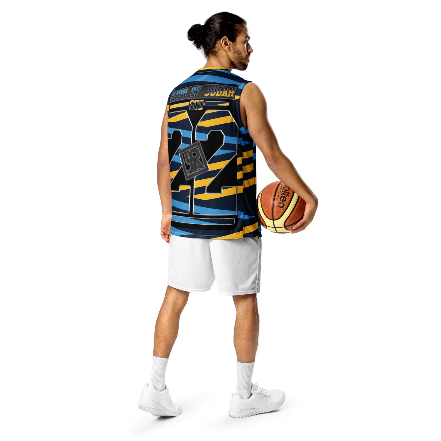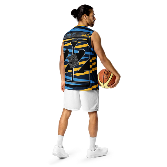Lion Of Judah God Design Recycled unisex Blue and yellow stripes Design basketball jersey