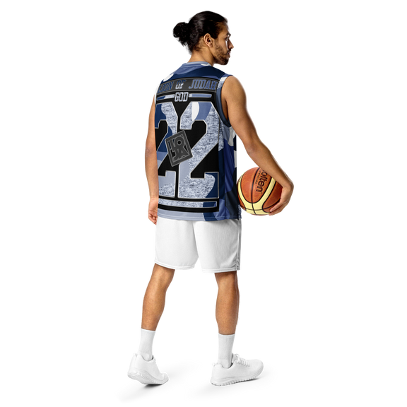 Lion Of Judah God Design Recycled unisex Blue White & Grey Camouflage Design basketball jersey