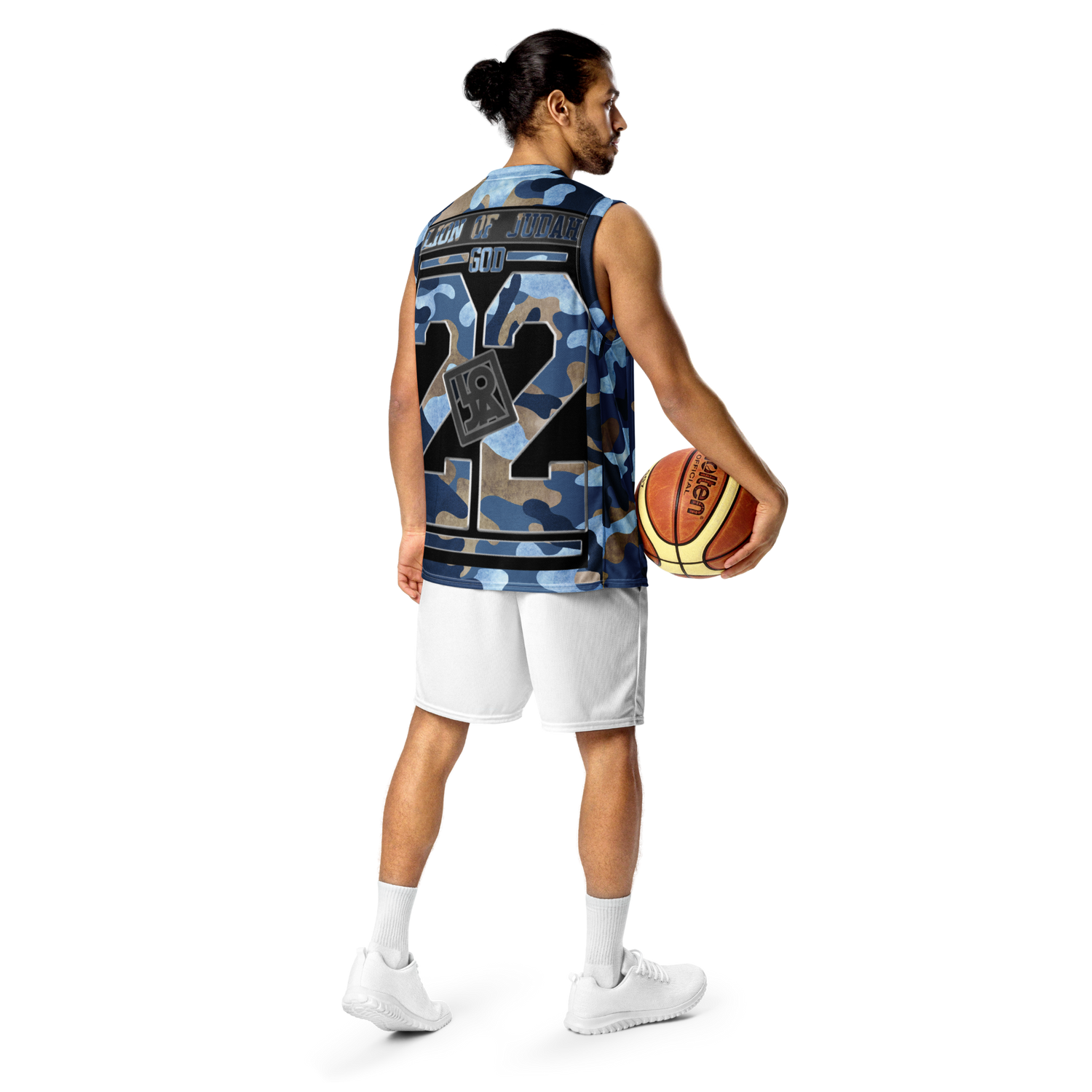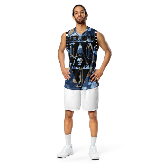 Lion Of Judah God Design Recycled unisex Dark Blue & Light Blue Camouflage Design basketball jersey