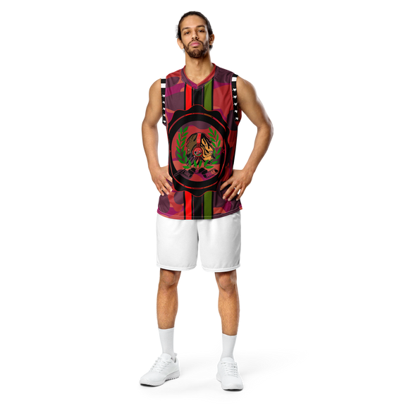Lion Of Judah GOD Purple, Light Orange & Dark Orange Dark Pink Camo Design Recycled unisex basketball jersey