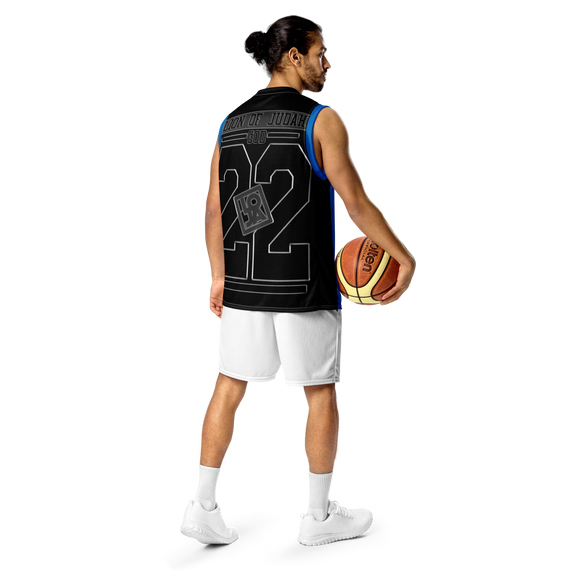 Lion Of Judah GOD Recycle Blue & Black unisex basketball jersey