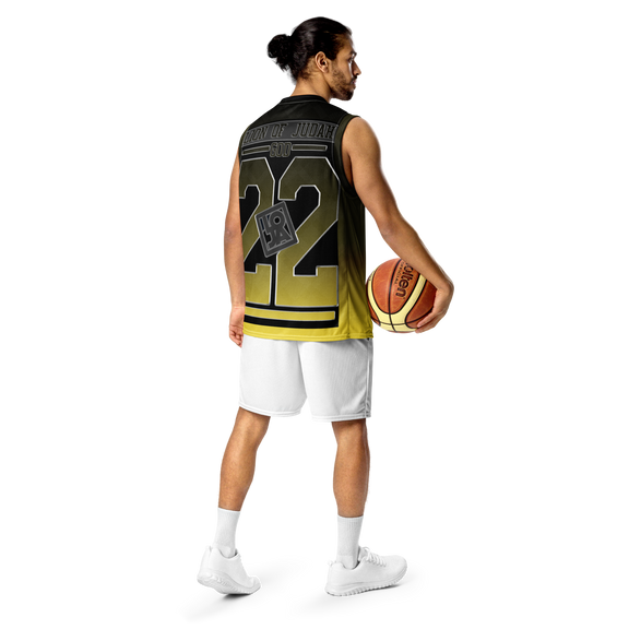 Lion Of Judah GOD Recycled Black to fade to Yellow unisex basketball jersey