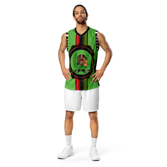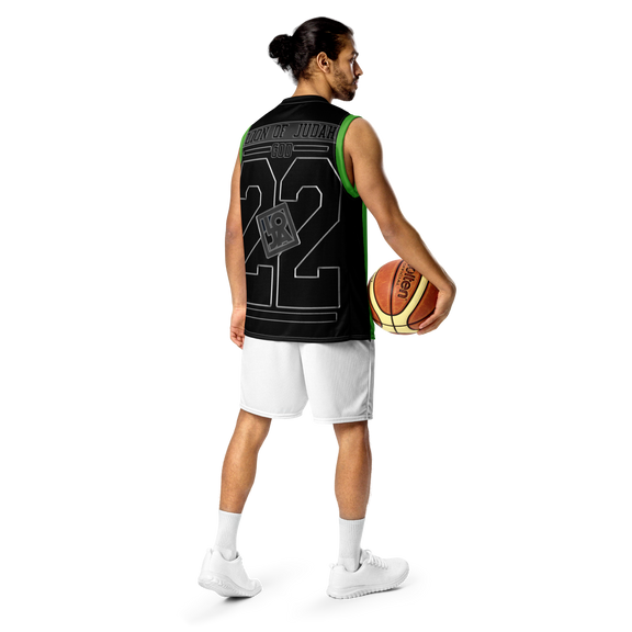 Lion Of Judah GOD Recycled Green & Black unisex basketball jersey