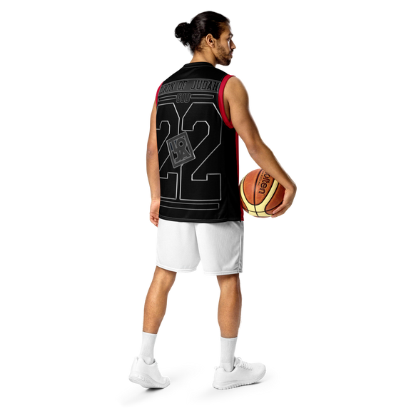 Lion Of Judah GOD Recycled Red & Black unisex basketball jersey