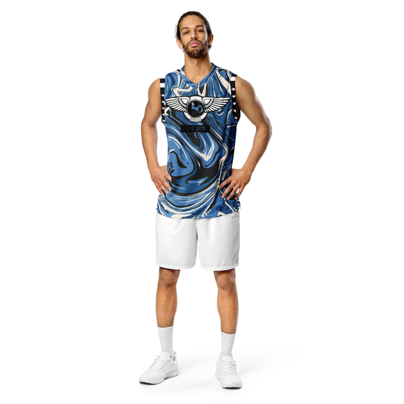 Lion Of Judah Wingz Design Recycled unisex Blue Swirl Design basketball jersey