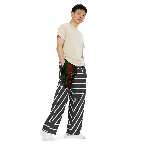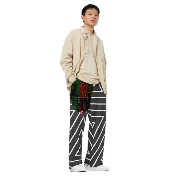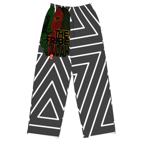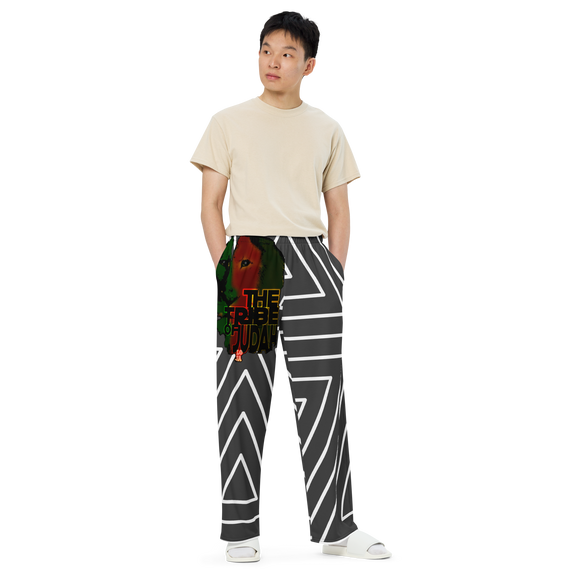 Tribe Of Judah Lion Black & White Abstract shape stripe Graphic Design Unisex Wide-Leg Pants