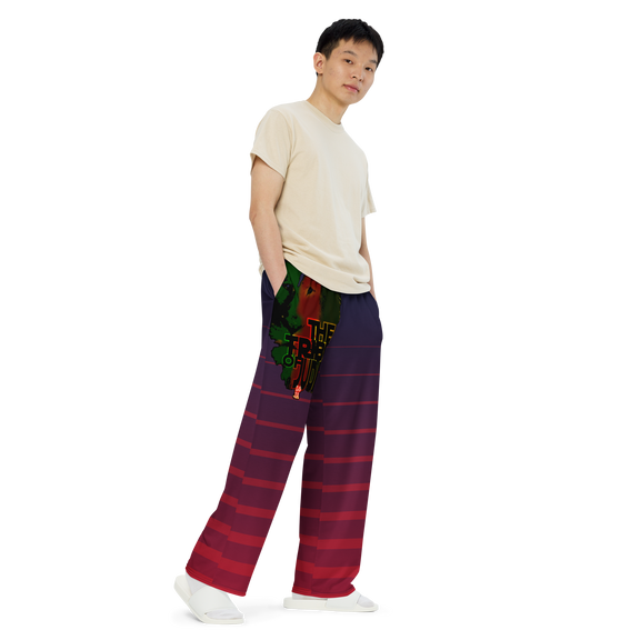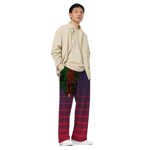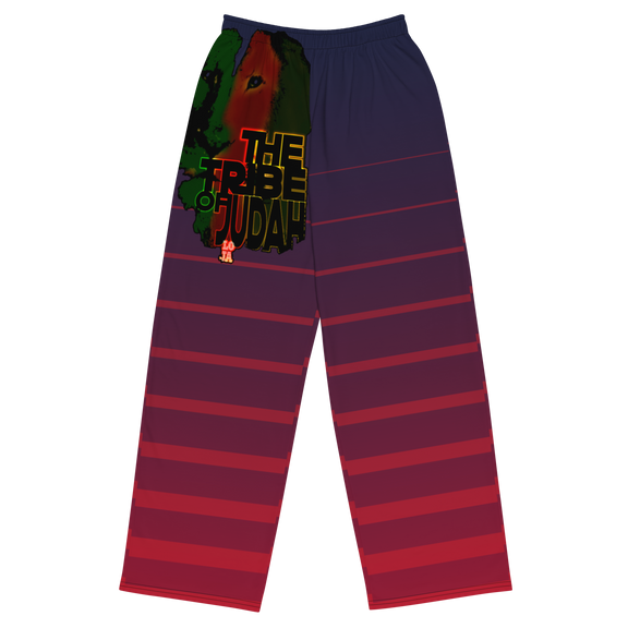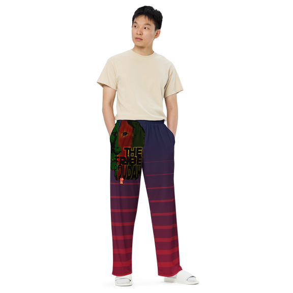 Tribe Of Judah Lion Blue Fade into Red Stripe Graphic Design Unisex Wide-Leg Pants