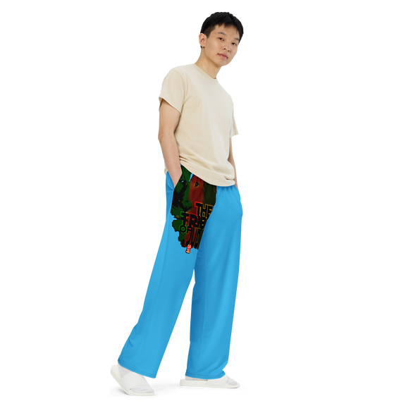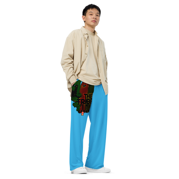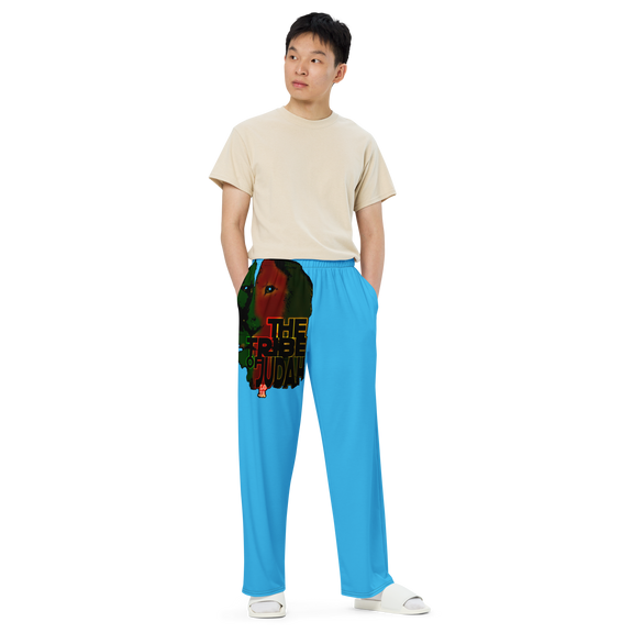 Tribe Of Judah Lion Graphic Design Deep Sky Blue Unisex Wide-Leg Pants