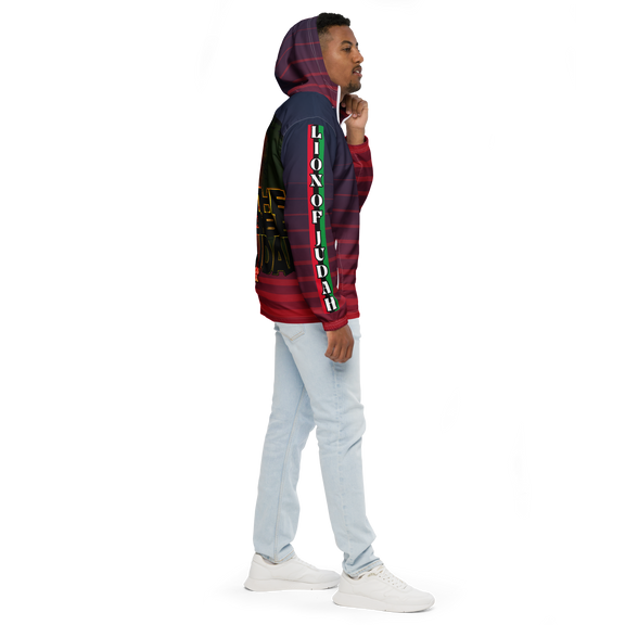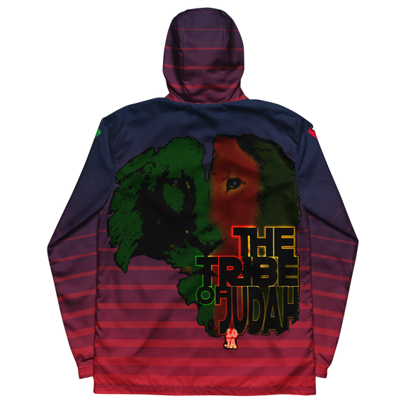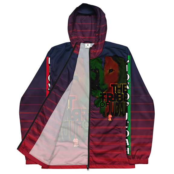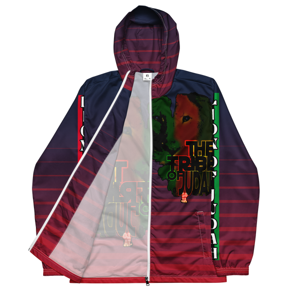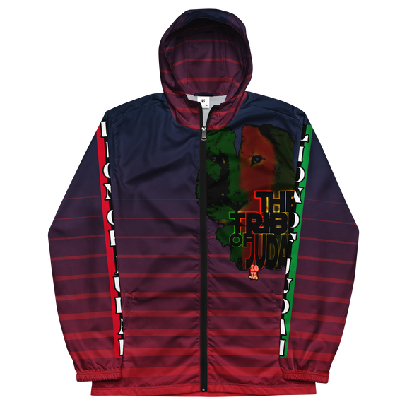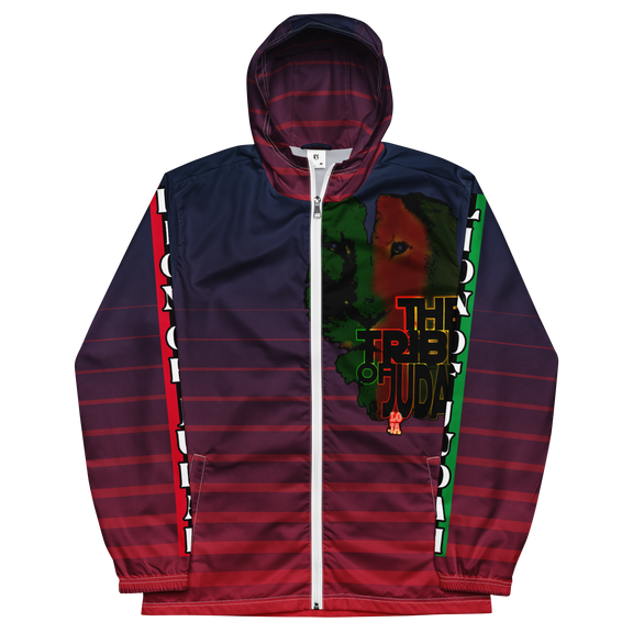Tribe Of Judah Lion Blue Fade into Red Stripe Graphic Design Men’s windbreaker